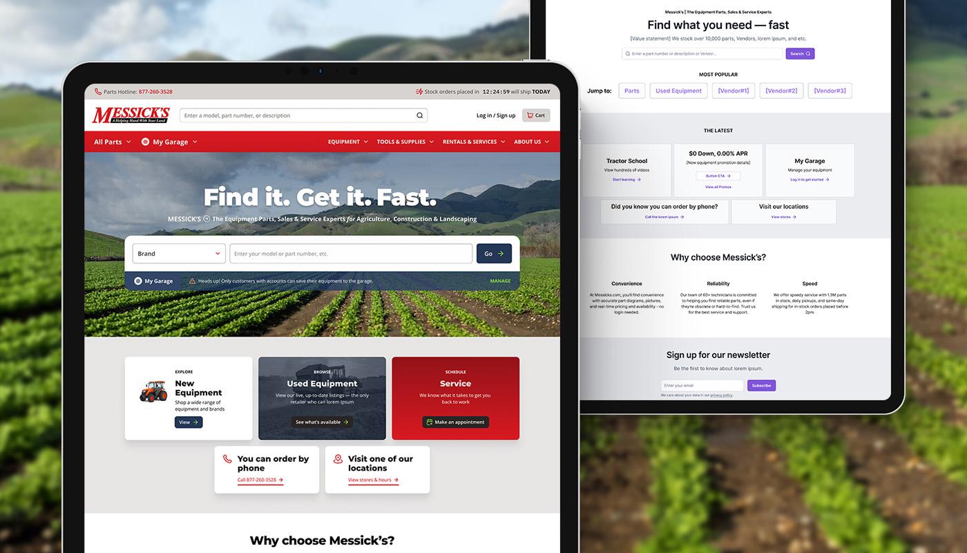 For many customers, the first interaction with Messick’s isn’t on a showroom floor — it’s online, searching for a part they need right now. But their most important tool, the Parts Finder, wasn’t pulling its weight. The process of finding parts was cumbersome — too many clicks, too few results.